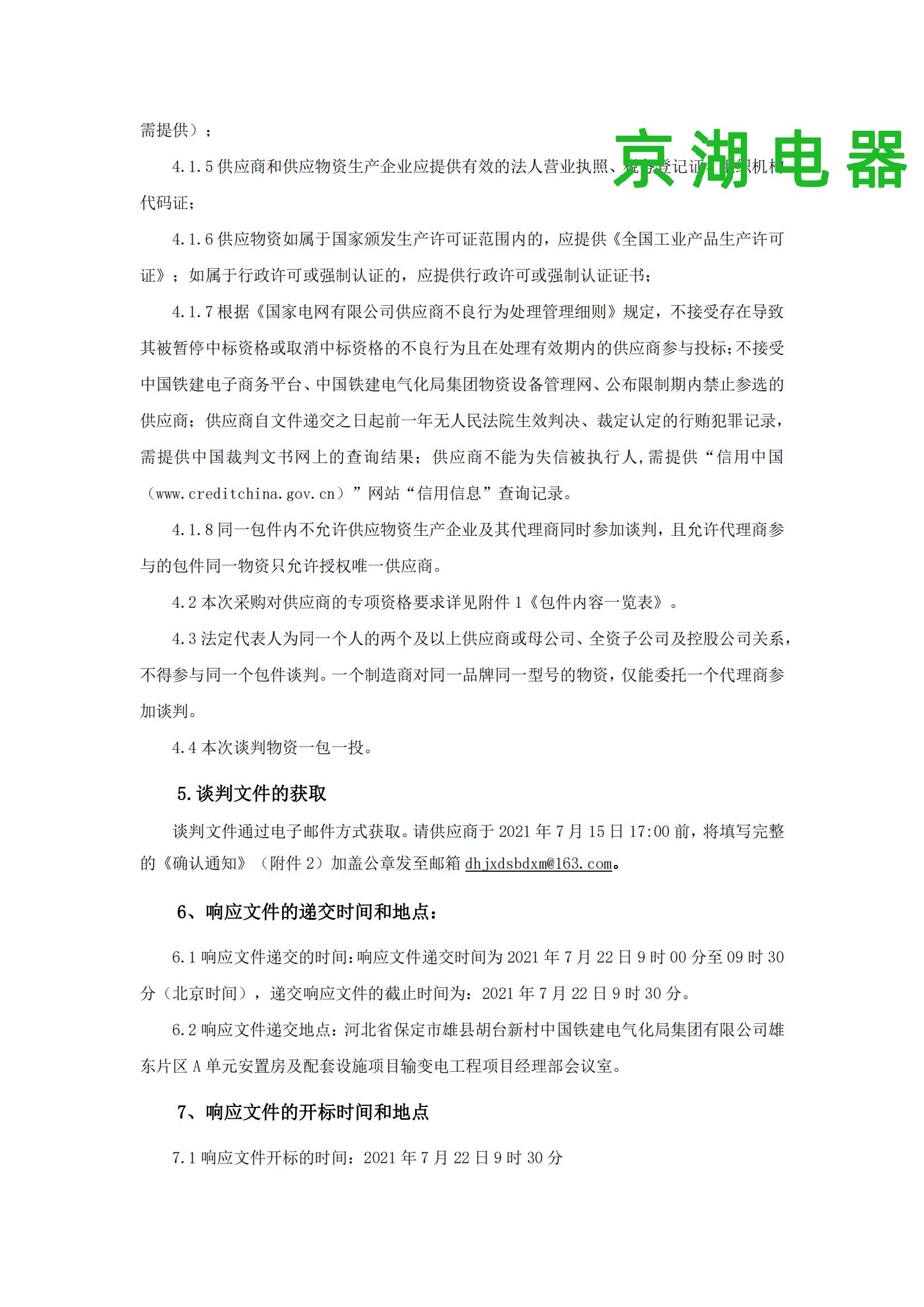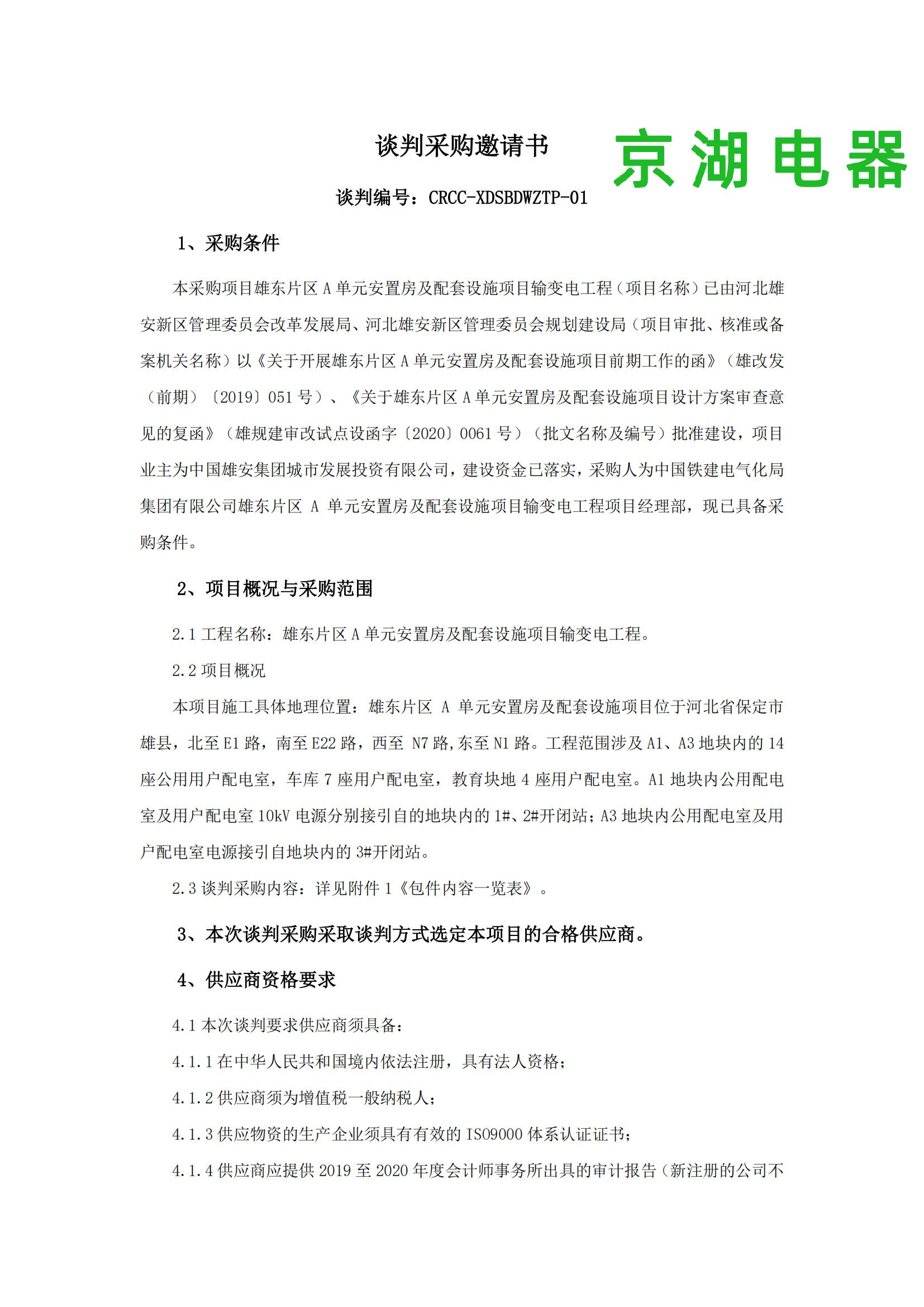 中國(guó)鐵建電氣化局集團(tuán)有限公司 談判采購(gòu)邀請(qǐng)書